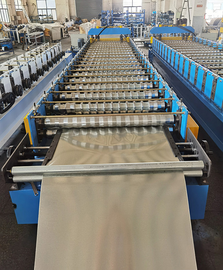 Description Metal Roof or Wall Roll Forming Machine is a roof/wall panel roll forming machine for continuous rolling and cold-forming on steel sheet. The roof/wall panel roll forming machine adopts coiling steel sheet as the raw material and coil car to feed the coil sheets to the decoiler. Through decoiling, continuous rolling and cold-forming, the coil sheets are automatically cut to the size and specification required. The stacking of finished panel can be also done automatically. It adopts PLC control, AC frequency and speed adjusting technology to realize continuous work automatically. The roll former is energy-saving and high-effective to be used for trapezoidal or corrugated steel. Application Roll forming line for roof panel is widely used to produce roofs and walls of workshops, warehouses and steel structure buildings, provided with high reliability and durability,advantage of easy installation and low cost. here is mini wave forming machine for fence, or mini corrugate sheet forming machine