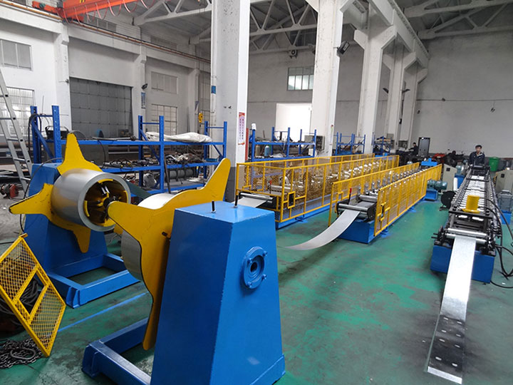 1.Main features of Strut Channel Rolling Forming Machine The advantages of Strut Channel Rolling Forming Machine are as follows: 1.Low cost, light weight but high strength, short building period, and re-cycle use 2.Save material ,no waste. 3.Easy operation, low maintenance cost 4.Beautiful appearance 5.Accuracy profile 2.Detail Strut Channel Rolling Forming Machine Machine Parts 1) 5 Ton Hydraulic Decoiler: one set machine Hydraulic control steel coil inner bore shrinkage and stop Max. feeding width:600mm Coil ID Range:508±30mm,Outside Diameter:1500mm Max capacity:5ton, motor:3KW, frequency speed control Oil pump motor:3KW Add automatic feeding power and self-stop device With Hydraulic Pressure Arm Device