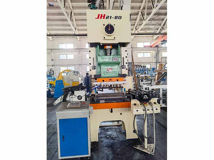 3) Servo Drive & Punching Machine 63 Tons HIGH SPEED punching machine before roll forming, equip with one set of punching model.Punching machine four sides with safety cover and one side with open the door.By PLC system control. Material sending by the Servo motor for punching more accuracy, servo motor power 3KW